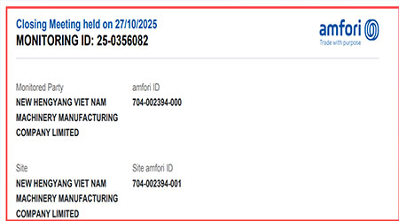 本文来源:浙江验厂网 - 热烈祝贺越南NEW HENGYANG VIET NAM MACHINERY MANUFACTURING COMPANY LIMITED2025年通过SGS-BSCI验厂