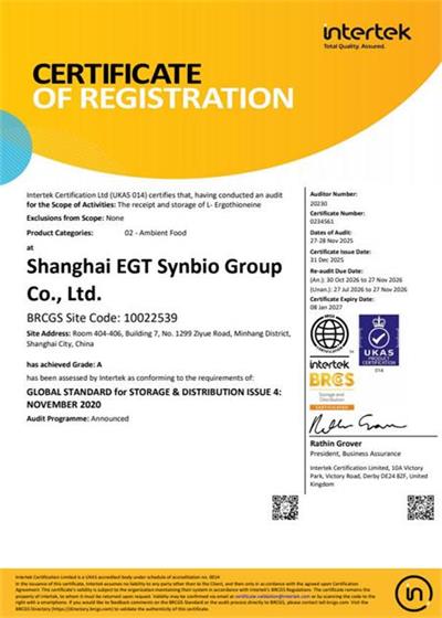 热烈祝贺上海麦角硫因科技有限公司2025年通过RBC认证并取得A级证书