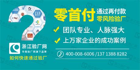 浙江验厂网作为受认可的第三方验证机构和培训机构(VB, Verification Body),拥有丰富的验厂认证咨询经验,可以提供众多项目的验厂认证辅导服务。我们的服务宗旨是“专业辅导+良好人脉”双保险确保工厂快速通过验厂,专为工厂解决验厂中遇到的各种难解之题;强大的顾问团队,优质的服务口碑,验厂关系通全国、可提前安排审核,现场公关、审核时间查询;通过后付款,选择浙江验厂网-任何原因导致验厂不通过,我们负责到底!
